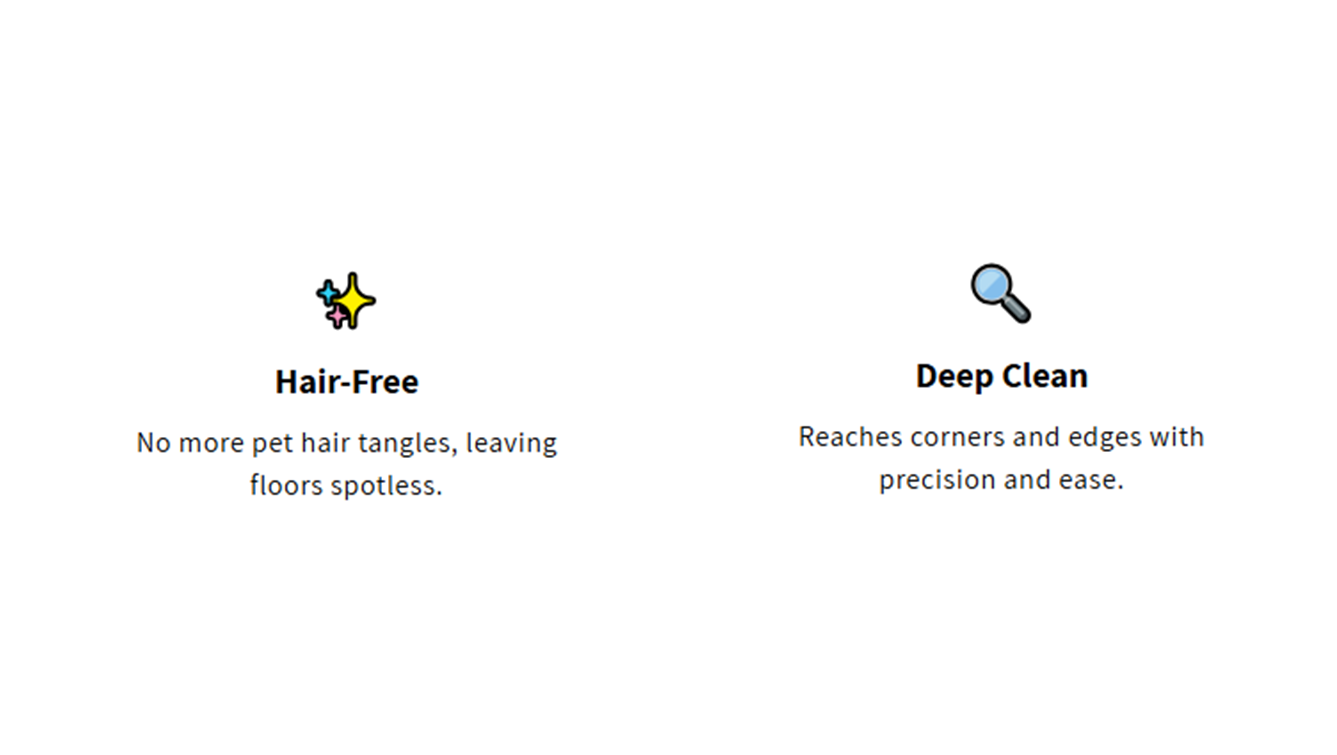 Don’t let pet hair and daily dust steal your time and peace of mind. With SmartClean™, your floors stay effortlessly spotless — so you can focus on what really matters. No more noise, no more tangles, no more stress.